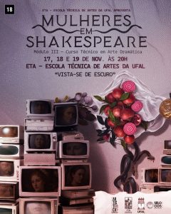 Dias 17, 18 e 19 de novembro a Escola Técnica de Artes da UFAL será palco do Espetáculo As Mulheres em Shakespeare criado pela turma do módulo III do Curso Técnico de Arte Dramática inspirado no livro Shakesperiana, de Nara Vidal, este espetáculo de Teatro Contemporâneo mergulha nas vozes femininas que atravessam a obra do dramaturgo inglês, ressignificando-as a partir de um olhar atual e visceral. Corpos se entrelaçam, colidem e se refazem para revelar as dores, os desejos e as resistências de personagens como Lady Macbeth, Julieta, Ofélia, Lavínia, Cleópatra e tantas outras. O espetáculo revisita as figuras femininas criadas por Shakespeare sob uma nova perspectiva.